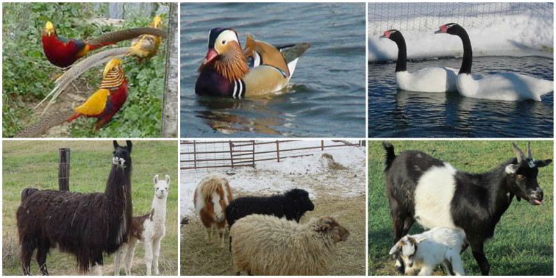 In addition to guinea fowl and peafowl, a menagerie of other beautiful and exotic birds and animals can be found residing at Guinea Farm. They include: alpacas, blackneck swans, golden pheasant, llamas, Mandarin ducks, miniature horses, pygmy goats, Shetland sheep.